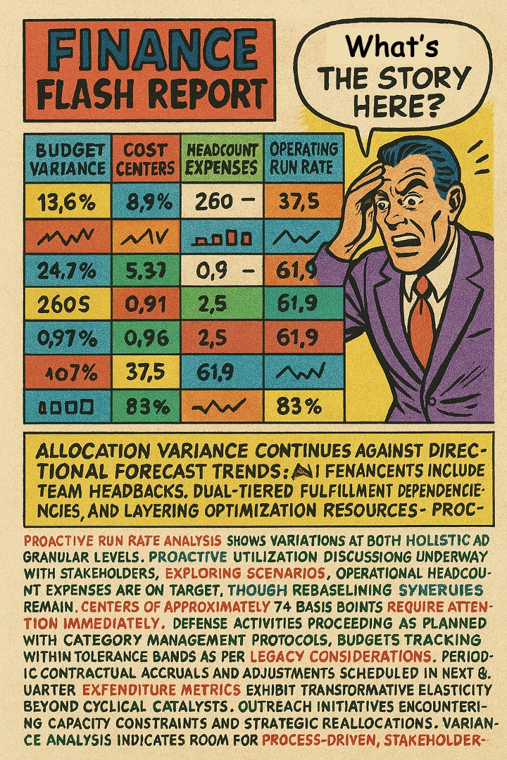 My finance business partner, directed by his boss, our new CFO, came to my leadership meeting with an updated monthly flash report. I had wanted better financial reporting for a while now, but what I saw left me disappointed, confused and angry.